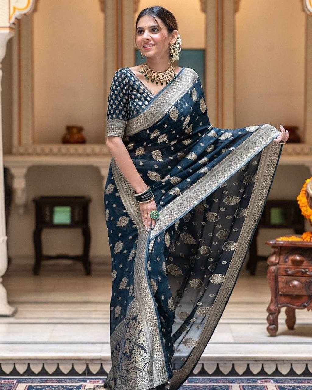 Name : KP-R 190 New Traditional Wear Navy Blue Saree