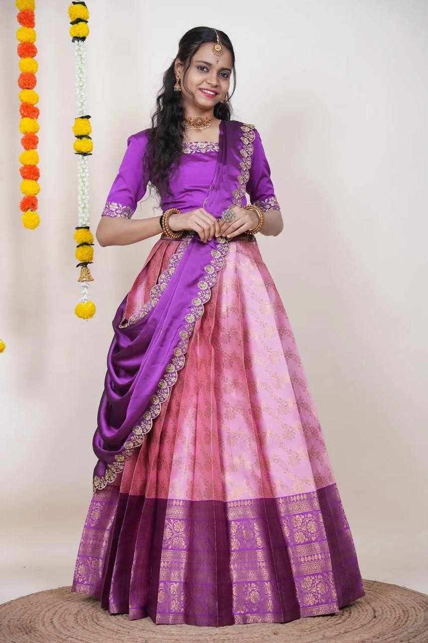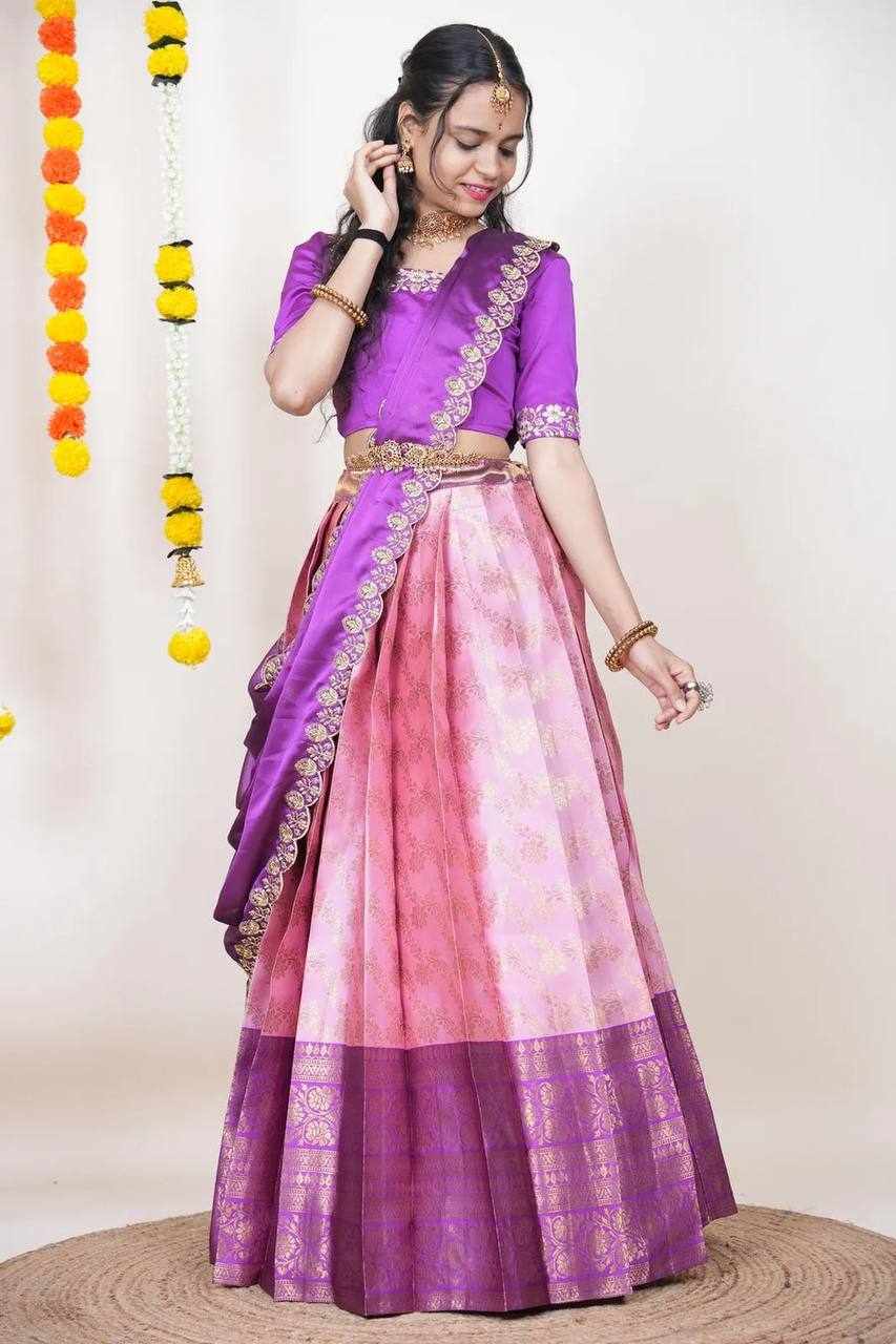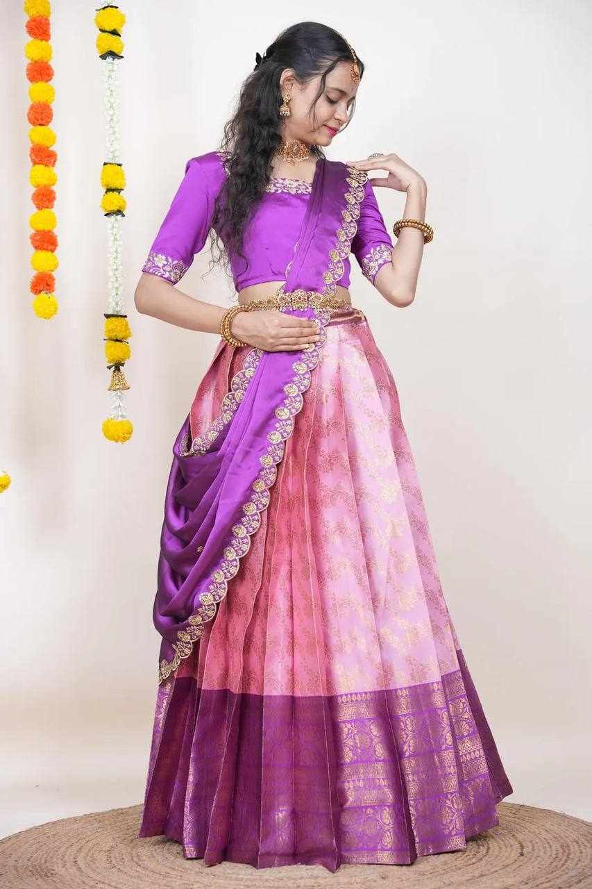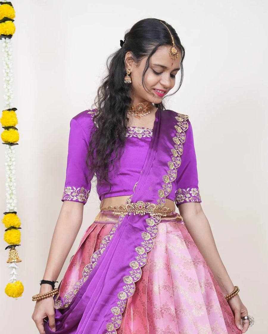 Name : KPW 332 Pink Kanjiveram Silk Zari Lehanga