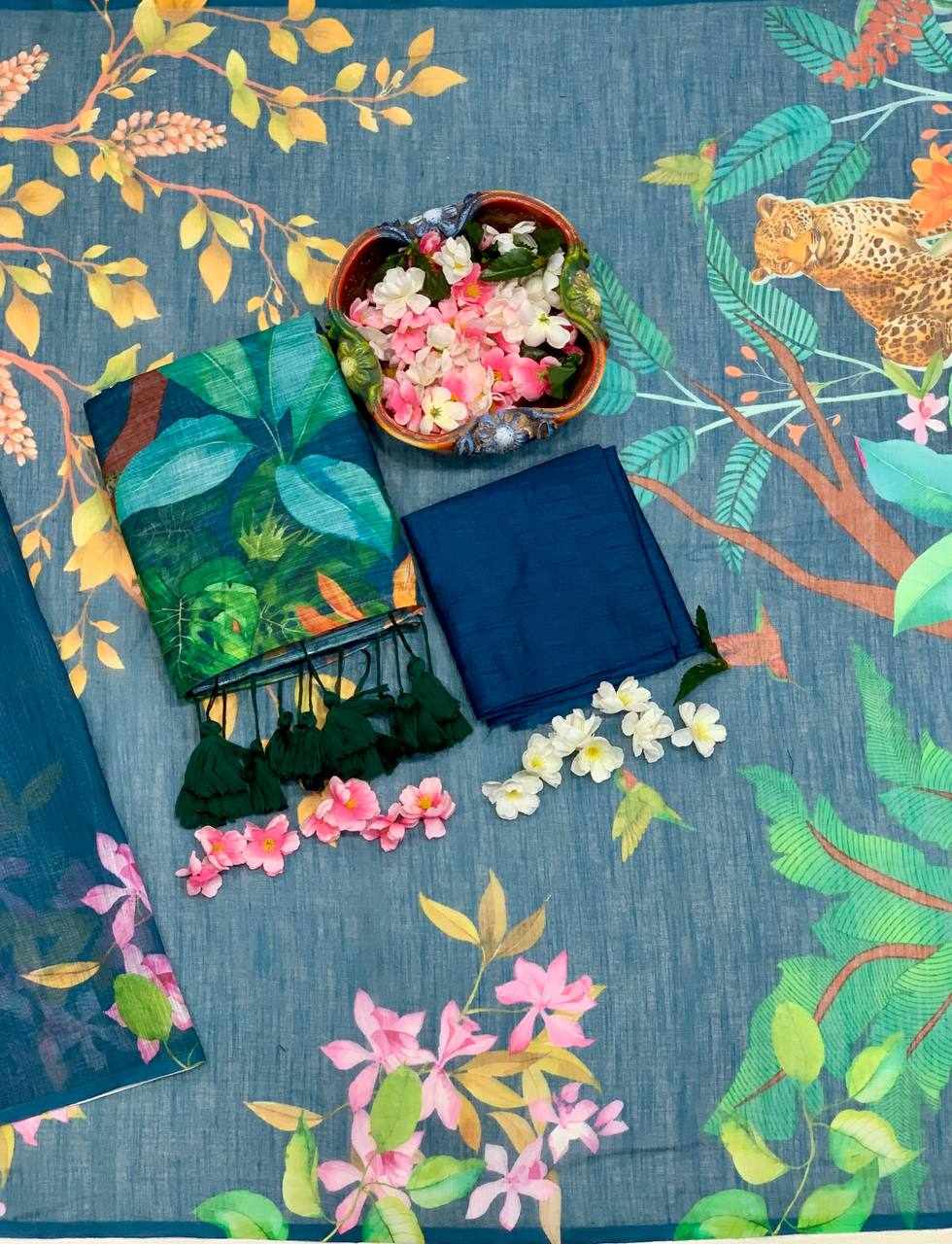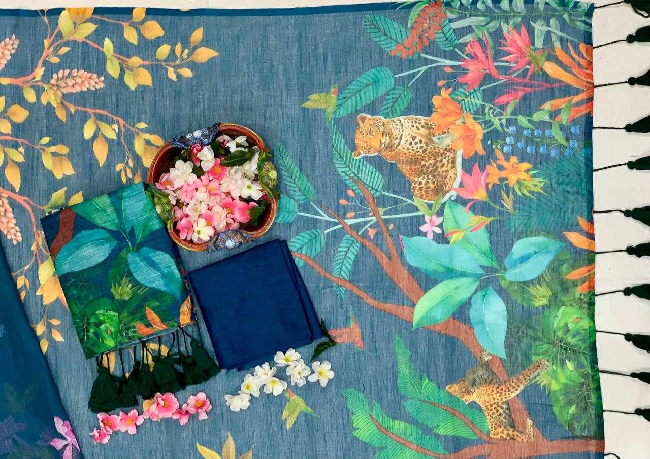Fabric: Linen Cotton with beautiful digital print and handmade cotton tassels (5.5 m cut)