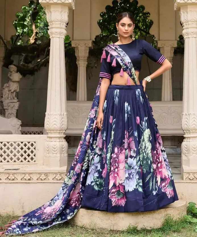 | Name : | PIYU 26-1 Silk Digital print Navy Blue Lehnga |