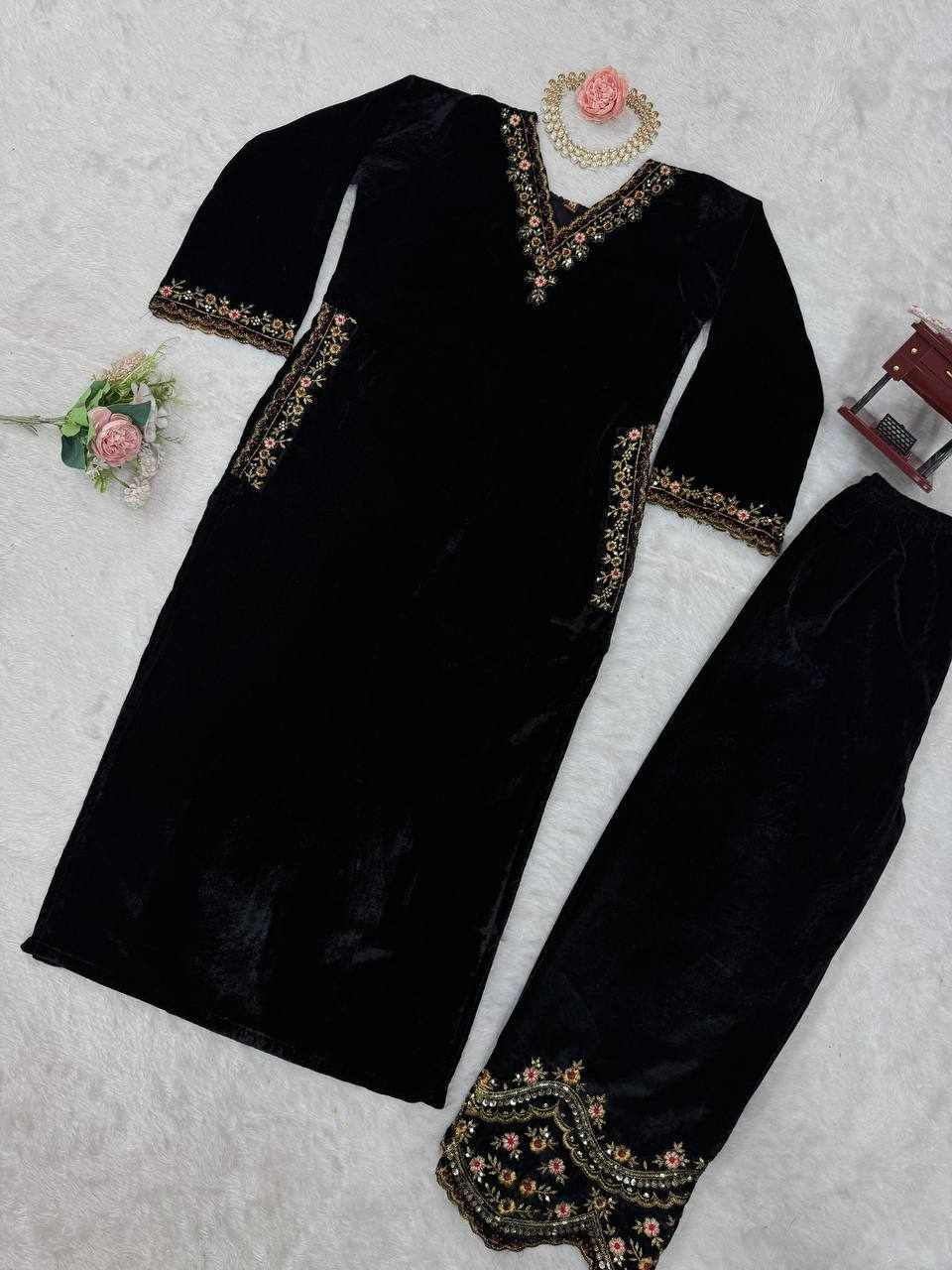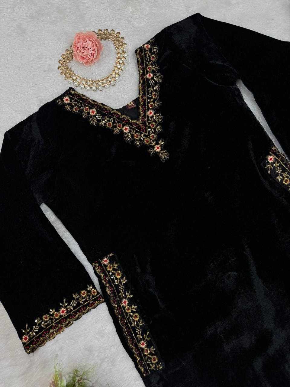 Rich velvet texture combined with detailed embroidery gives a royal, classy, and comfortable look.