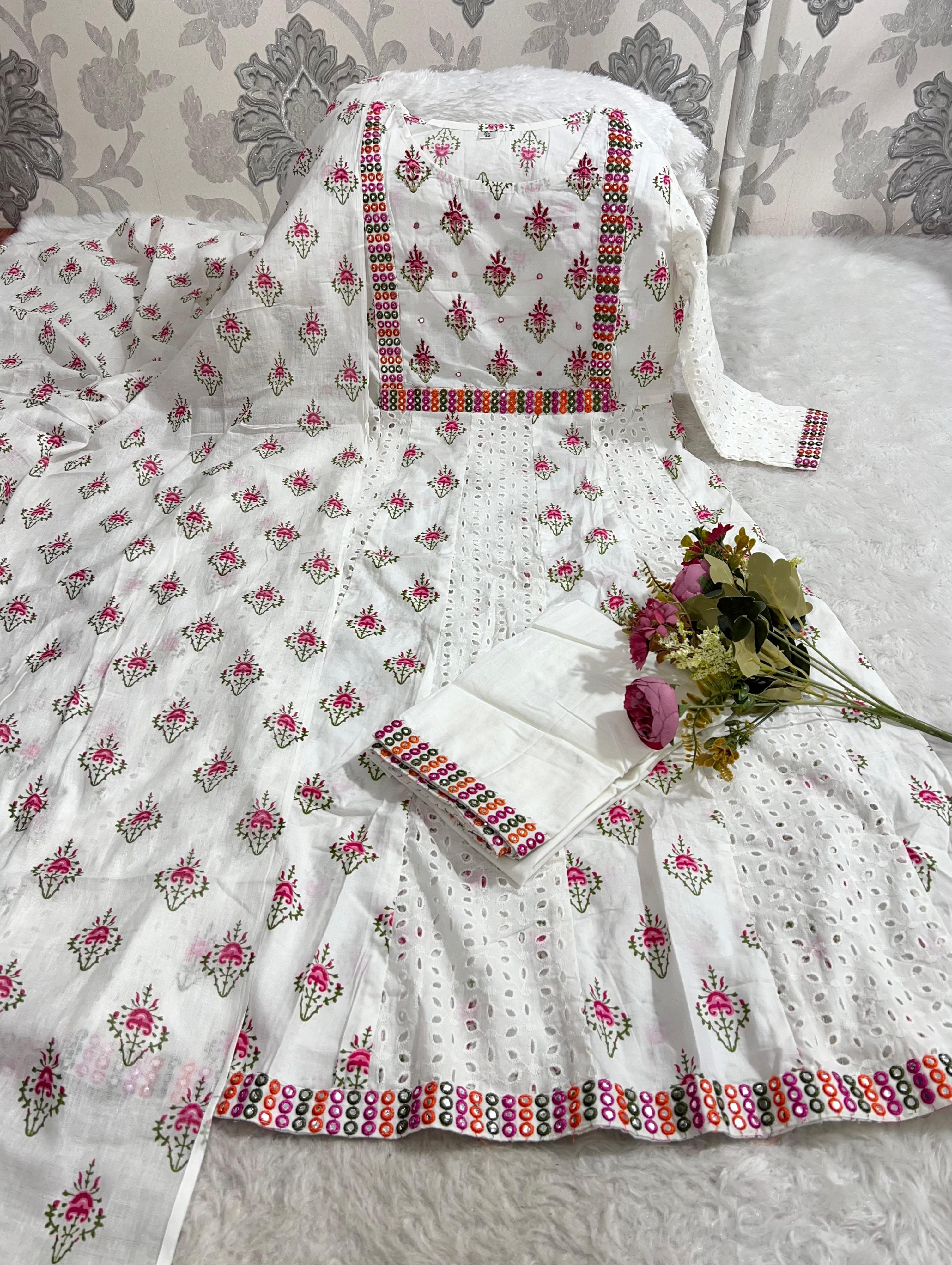 SF 11JUL Anarkali chikankari Kurti with Mirror Embroidery Cotton Dress