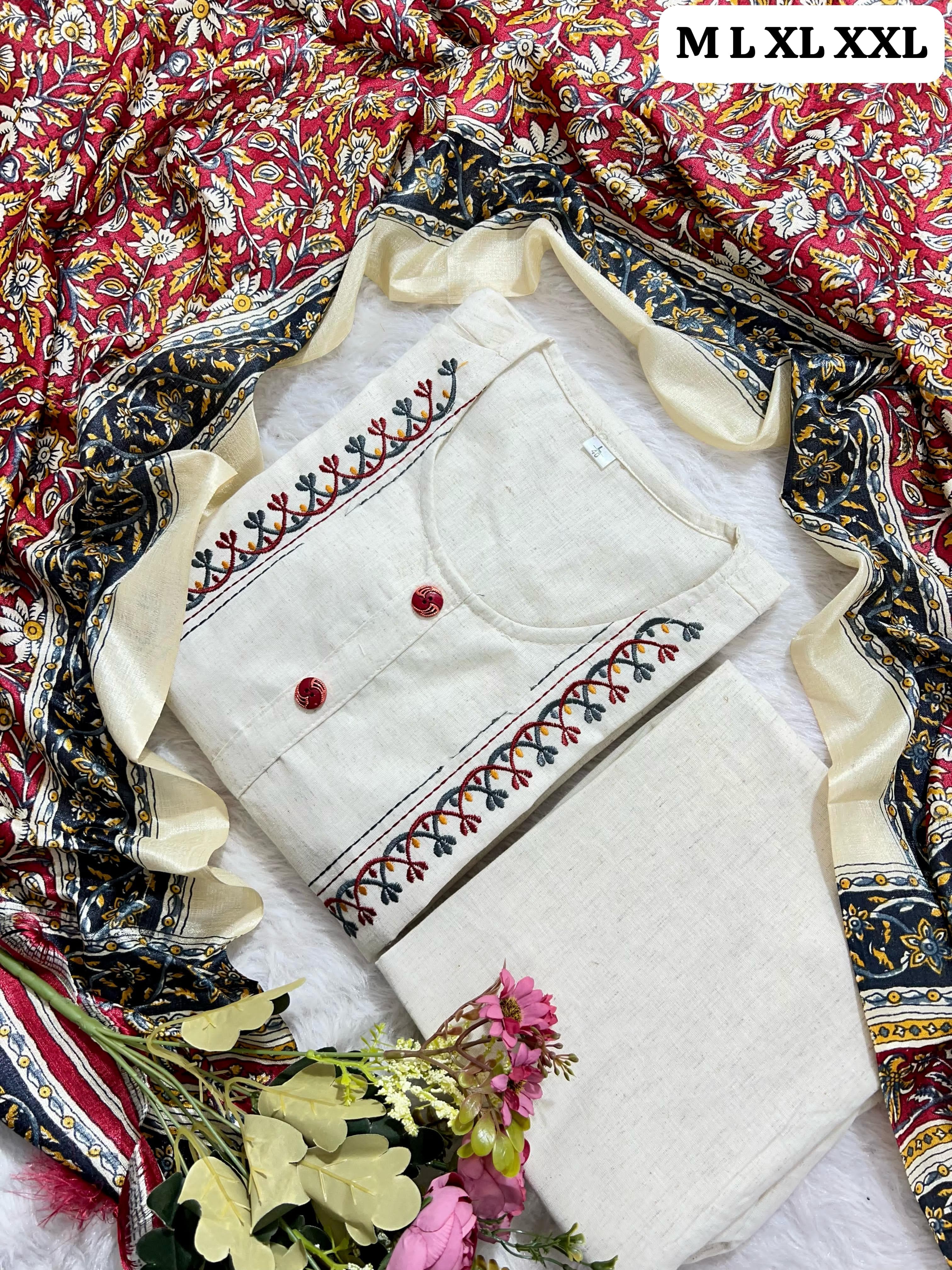 SF 2JU Beautiful Cotton Kurti With Pant And Silk Chanderi Digital Print Dupatta 330