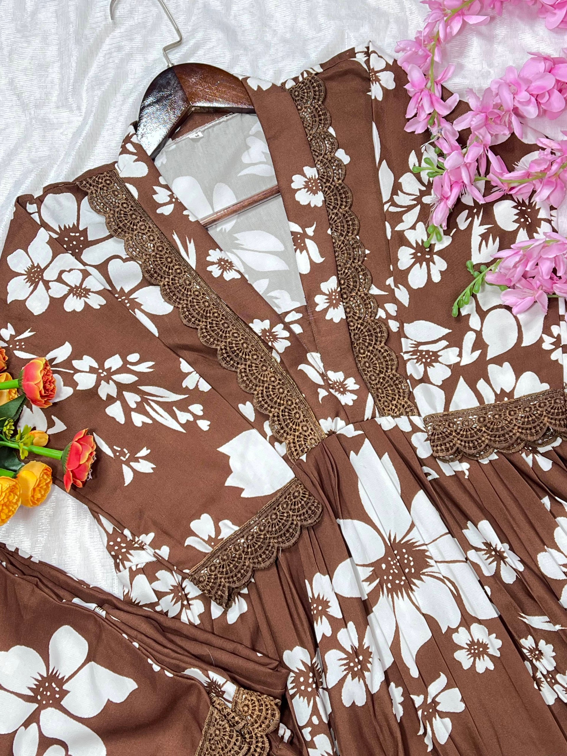Bottom Work : Floral Print with Embroidery lace